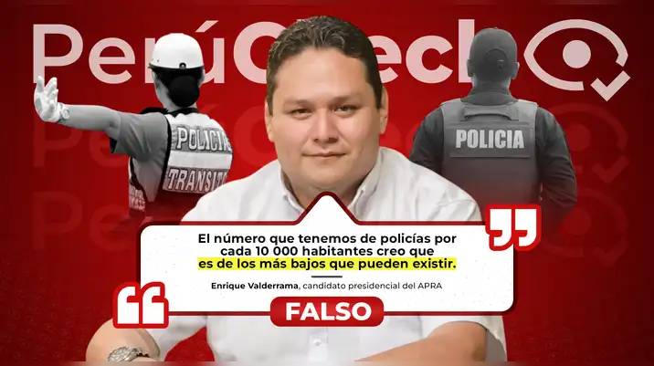 ¿El número de policías por cada 10,000 habitantes en el Perú es “de los más bajos que pueden existir”? Es falsa la afirmación del candidato Enrique Valderrama